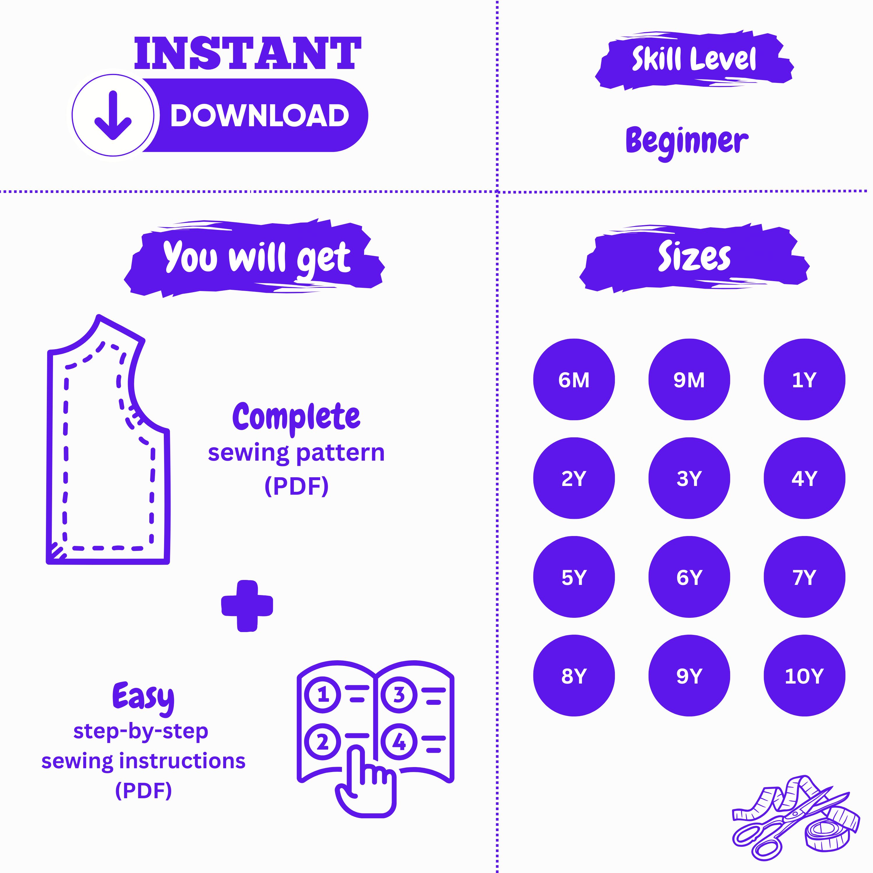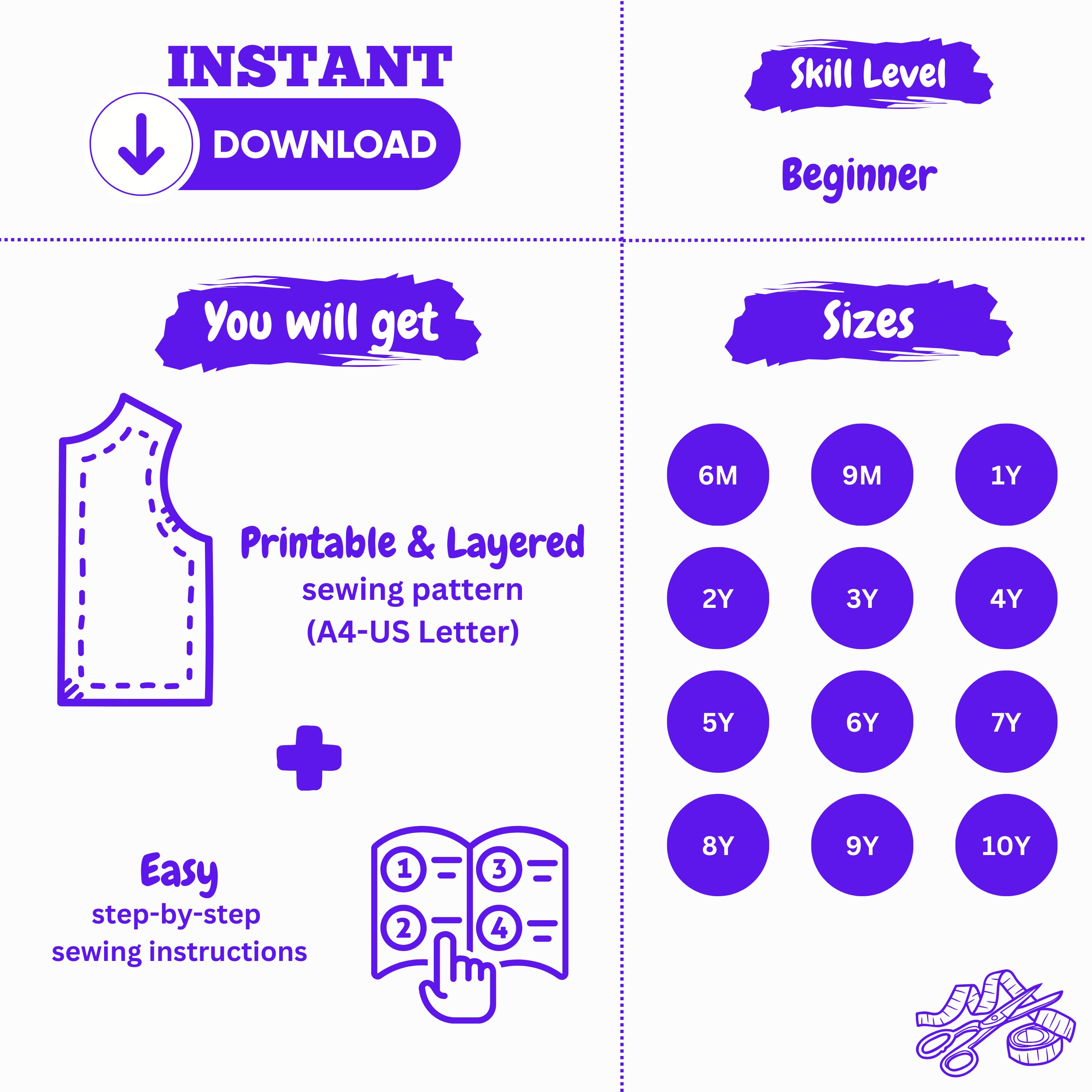 Each pattern is beginner-friendly, with clear step-by-step guidance, clean layouts, and layered sizes that let you print only the size you need. Simply download, print at home or at a copy shop, and start sewing right away.